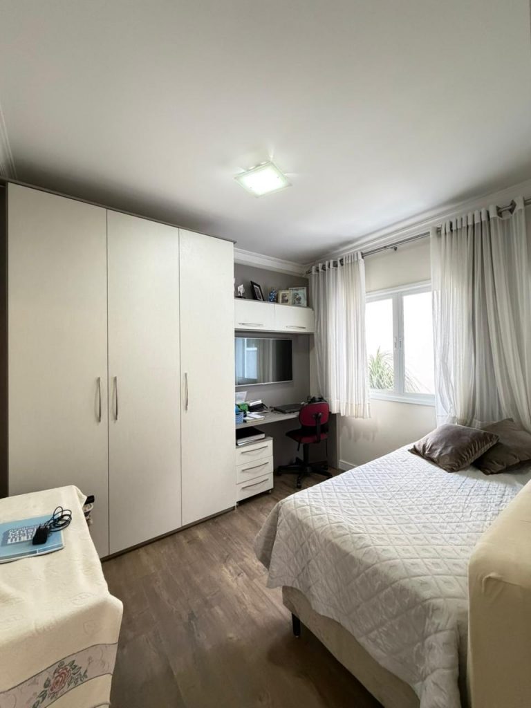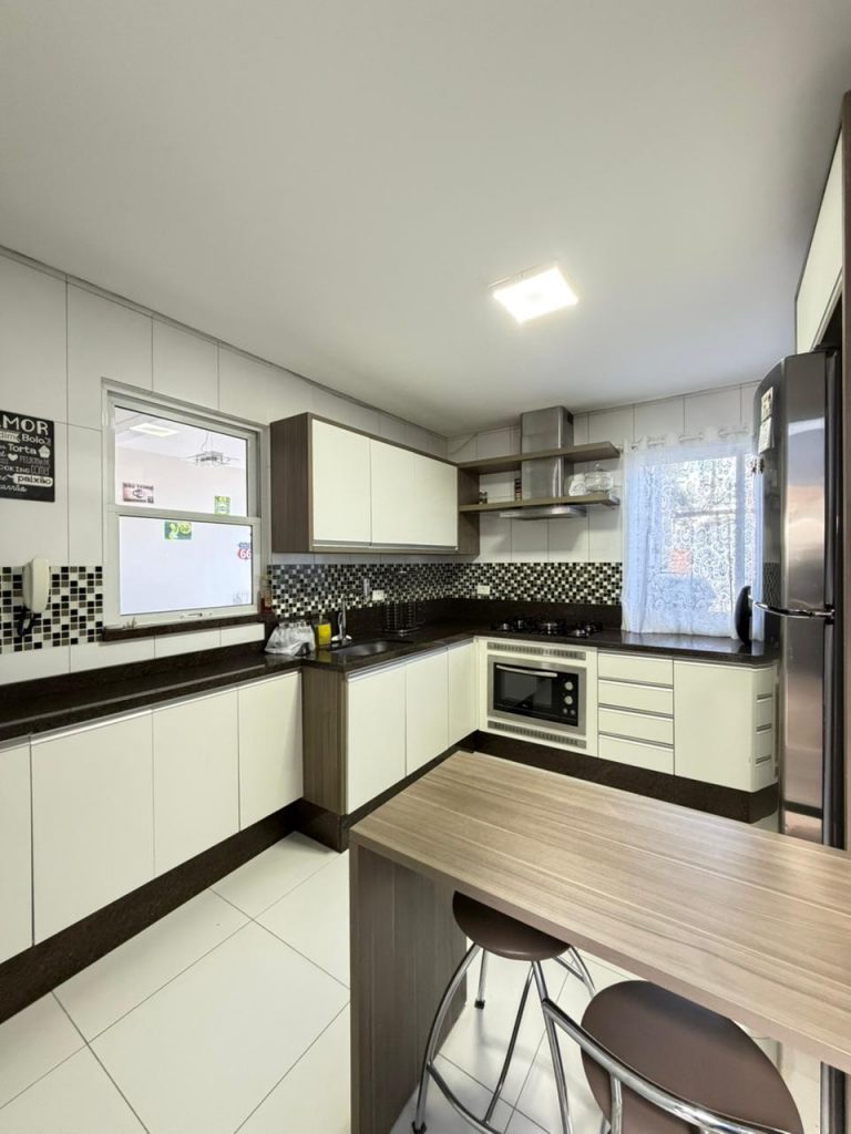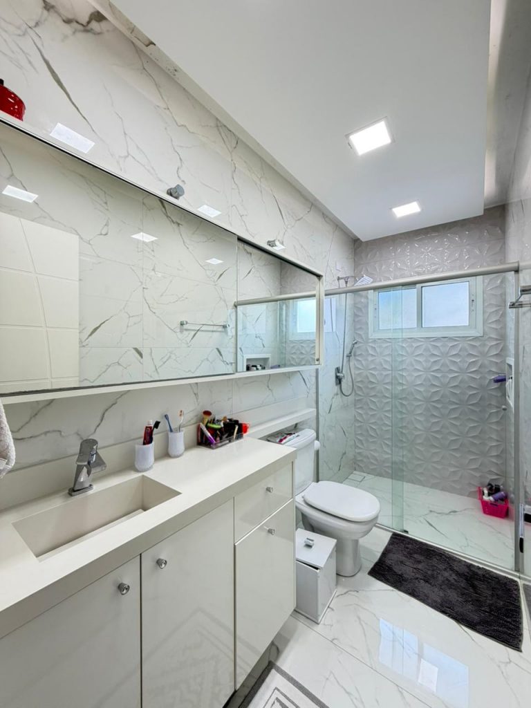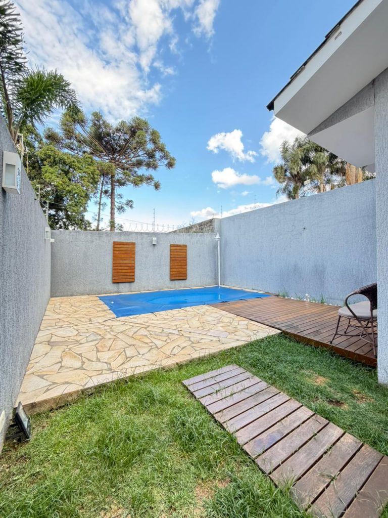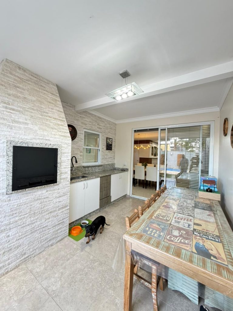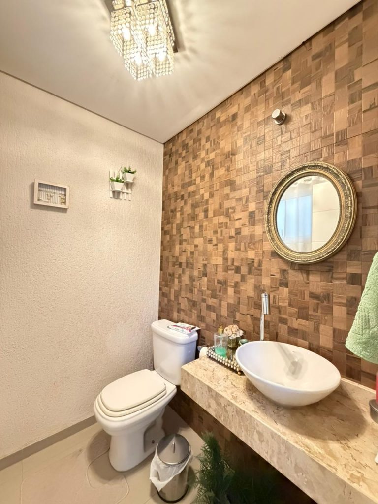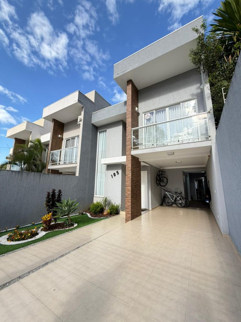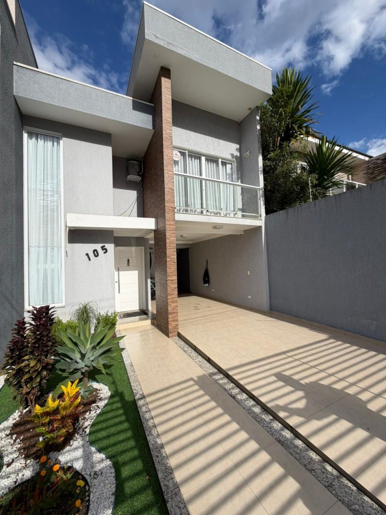 Possuindo 3 quartos, sendo uma suite e banheiro social na parte superior, e na parte térrea, temos sala de estar e jantar integradas, lavabo, cozinha, area gourmet com churrasqueira, area de serviço e piscina aquecida, garagem para 2 carros, sendo um deles coberto.