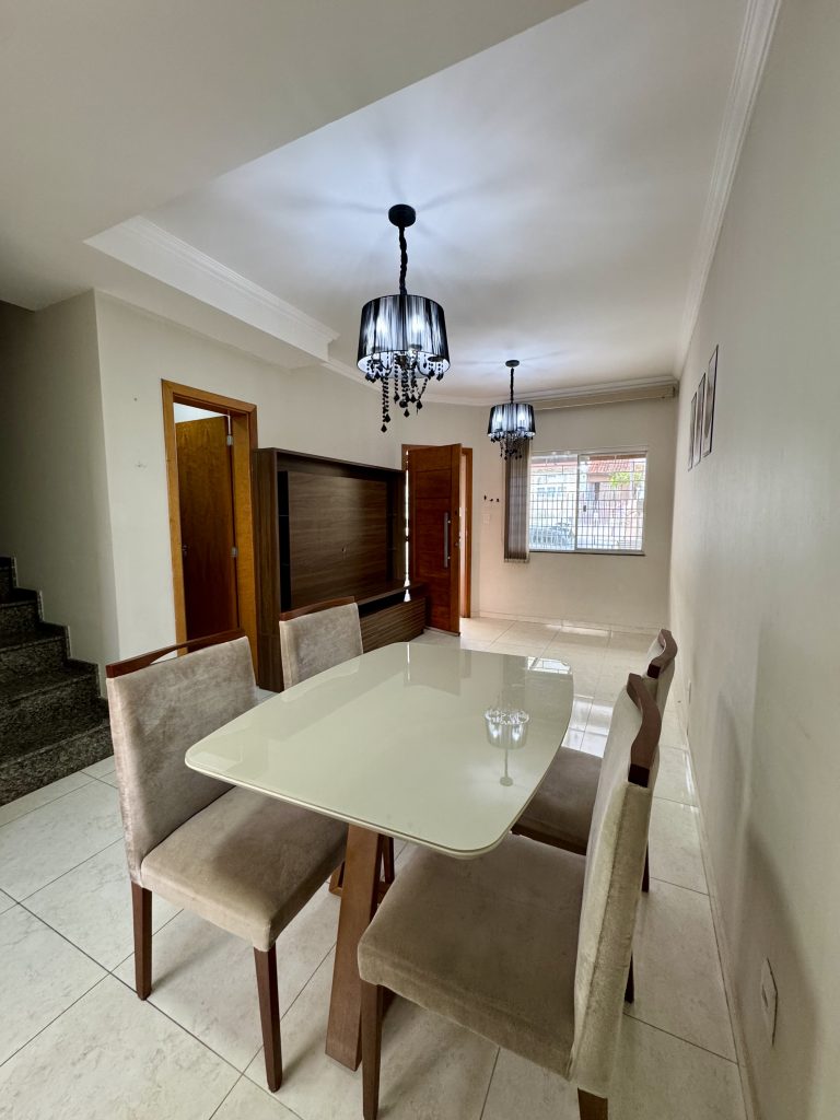 Excelente sobrado semi mobiliado com aprox. 115,00 m² contendo 3 quartos sendo 1 suíte (sendo dois com armários) , sala para dois ambientes com mesa e painel de TV, cozinha com moveis planejados e cooktop, churrasqueira, lavanderia e 2 vagas de garagem.