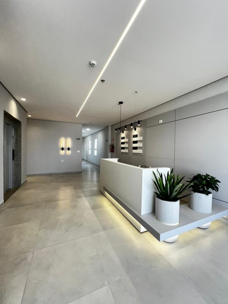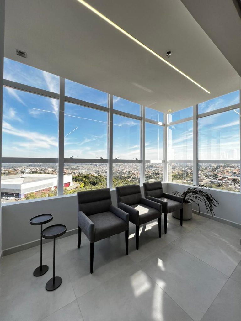 Sala com possibilidade de adaptação, podendo fazer as divisórias conforme a necessidade.